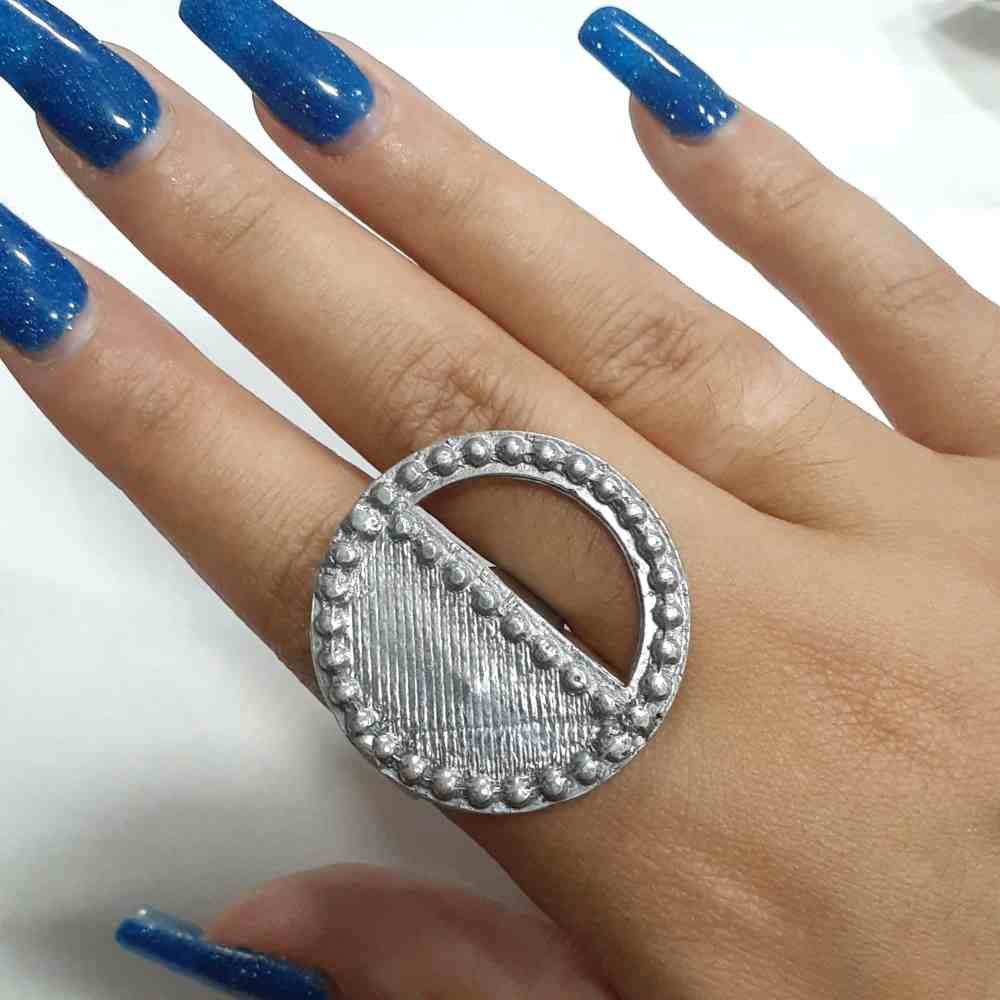 Anel feito no alumínio, um material hipoalergênico, antioxidante e fácil de limpar.