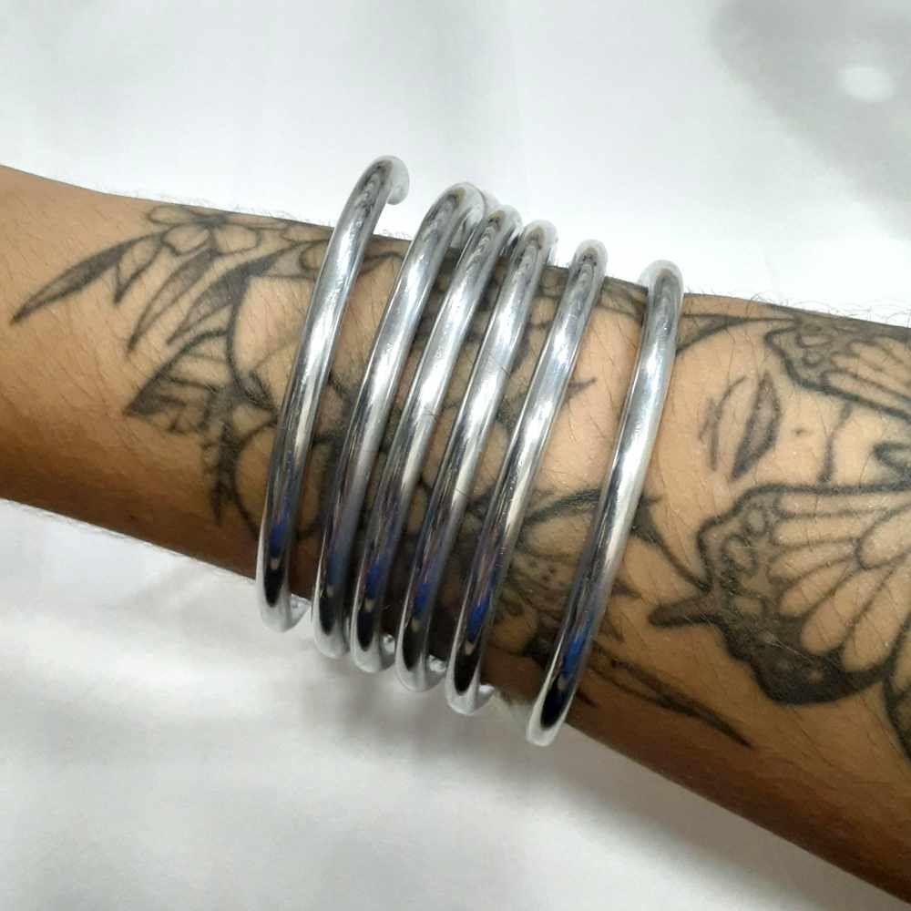 O bracelete de alumínio é um acessório leve, durável e resistente à corrosão. Hipoalergênico, é seguro para peles sensíveis e está disponível em diversos designs, além de complementar seus looks com elegância e estilo.