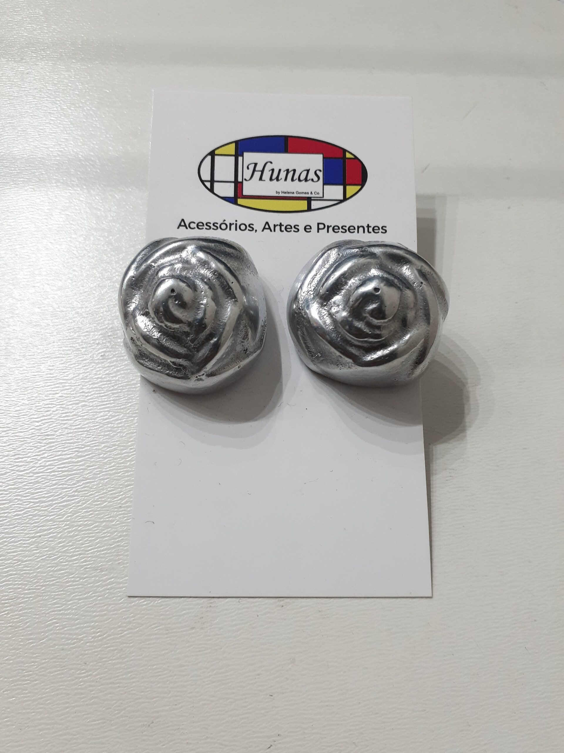 Brinco feito de alumínio, um material antioxidante, hipoalergênico e fácil de limpar.
