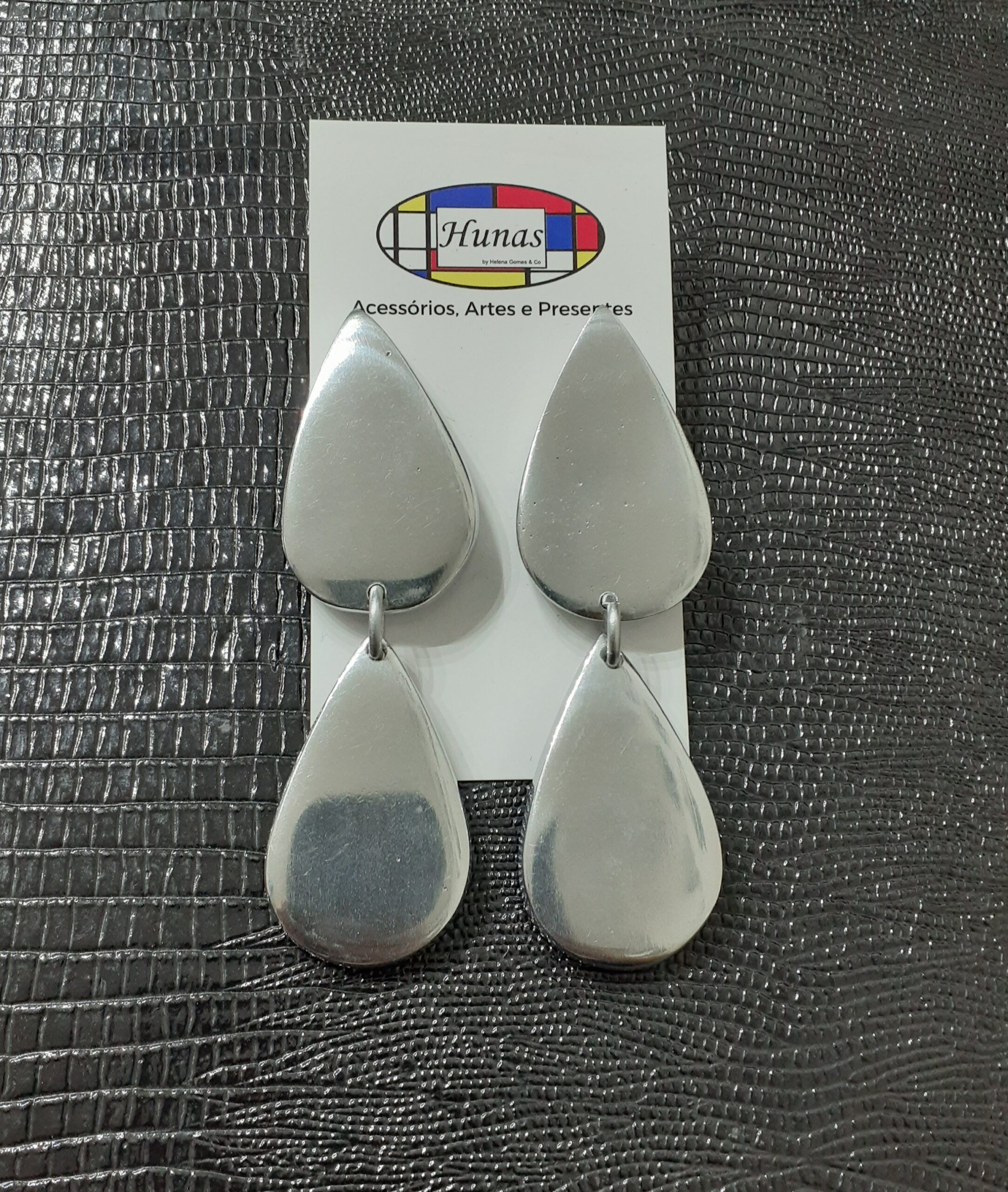 Brinco feito de alumínio, um material antioxidante, hipoalergênico e fácil de limpar.